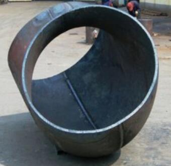 蝦米腰彎頭。在他和無縫彎頭之間,還有一個兩半的彎頭產品的拼接工藝。就是說什么呀?采用鋼板,然后下好了材料之后,在壓力機上壓出來彎頭產品的一半的形狀。再把另一半給做出來,合在一起,上面一道焊縫,下面一道焊縫。也有的就是左右兩邊各有一條焊縫的,這個盡管說位置不一樣,不過所起的作用和功能是一樣的。此類產品的兩個重點,其一,就是產品材質厚度保證,其二就是產品的角度和焊接工藝的保證,有這上面的兩項技術指標合適,就可以生產出來合格的